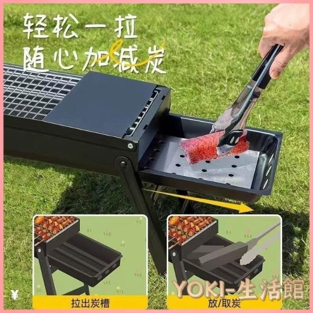 烤肉架 折疊烤肉 折疊烤肉架 不鏽鋼烤肉架 燒烤爐 家庭烤肉 燒烤爐燒烤戶外木炭架子家用烤肉抽拉式炭槽便攜式折疊爐子