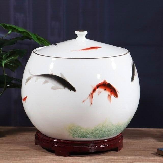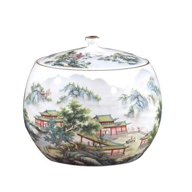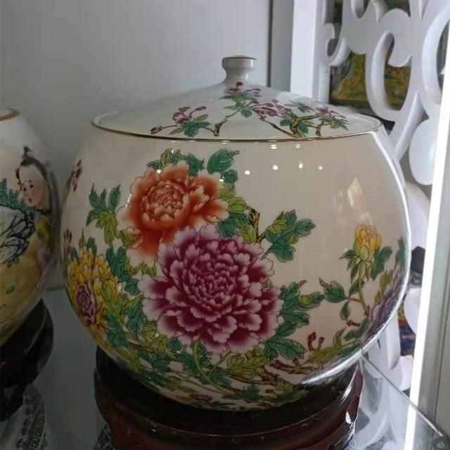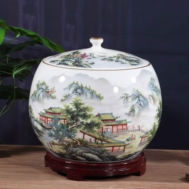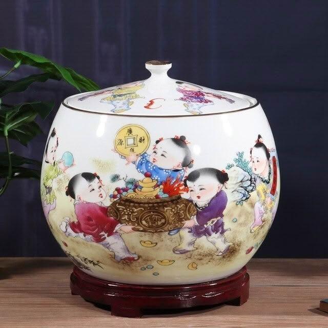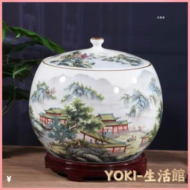 🔥熱銷新款米缸 陶瓷米缸 米桶 儲米桶 五穀收納桶 麵粉缸 景德鎮陶瓷琺瑯彩帶蓋密封米缸雜糧茶葉罐家用客廳玄關擺件儲物