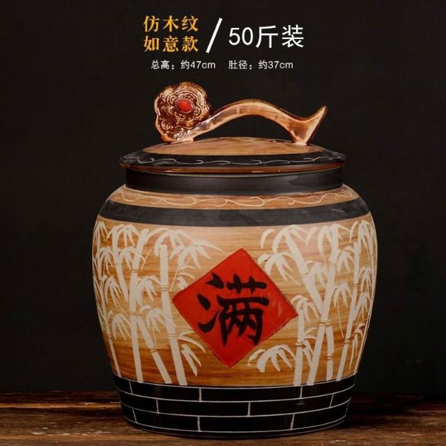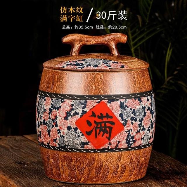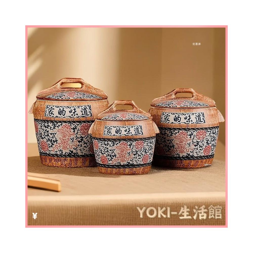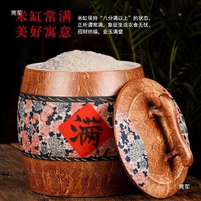 🔥熱銷新款米缸 陶瓷米缸 米桶 儲米桶 五穀收納桶 麵粉缸 陶瓷米缸家用米桶麵粉儲存罐水缸密封防蟲防潮雜糧複古中式