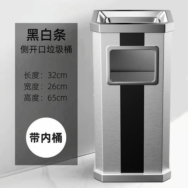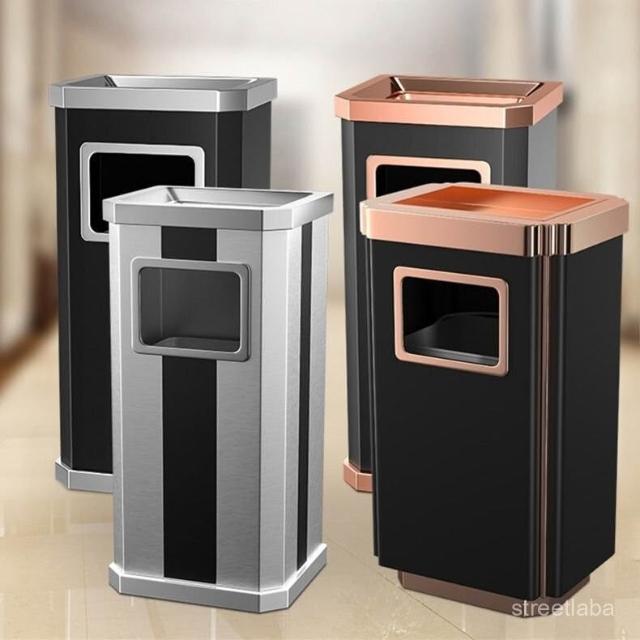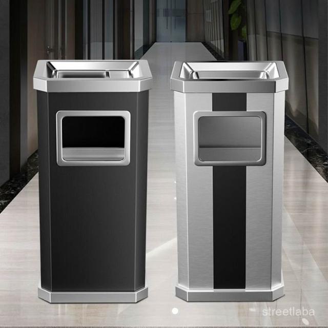 🔥凡藝 免運🔥不銹鋼大堂立式商場靠墻黑條電梯口酒店帶煙灰缸垃圾桶戶外果皮箱