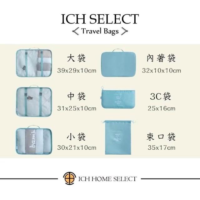 ICHco 實體門市 行李收納袋/分裝袋七件組-旅行用品行李箱登機箱旅行箱日本旅遊歐洲旅遊用品美國旅遊