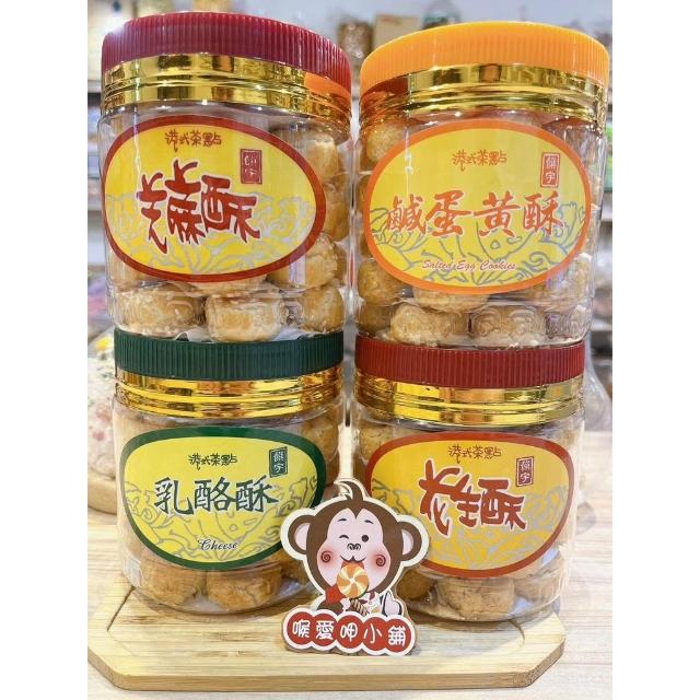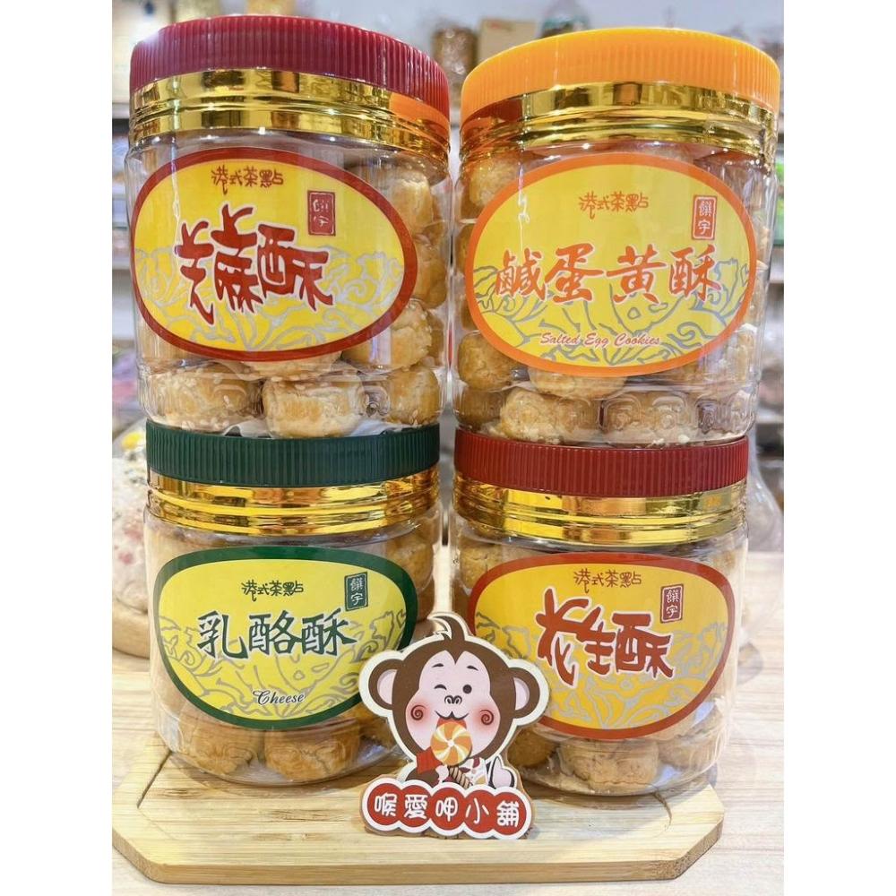 喉愛呷小舖 港式茶點:乳酪酥 花生酥 芝麻酥 鹹蛋黃酥 250g/罐
