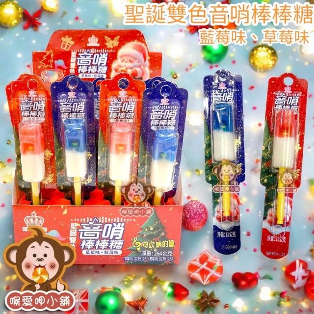 喉愛呷小舖 雙色音哨棒棒糖 單隻販售 11g/支 口味隨機出貨 聖誕節款 一般款 糖果