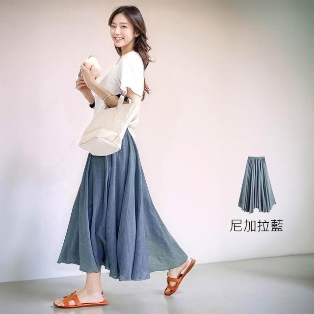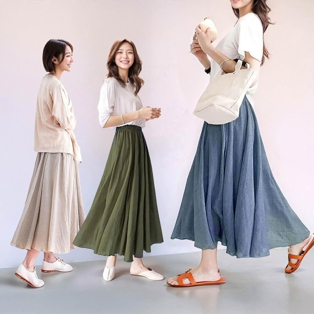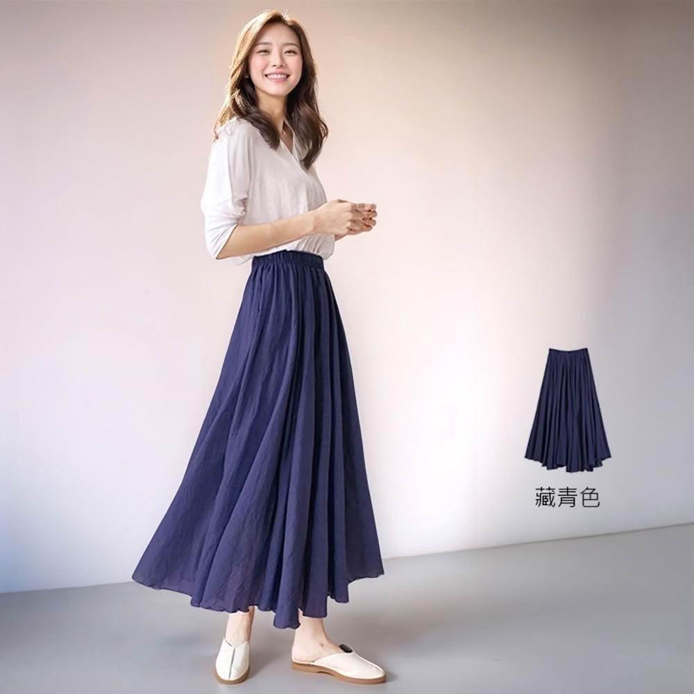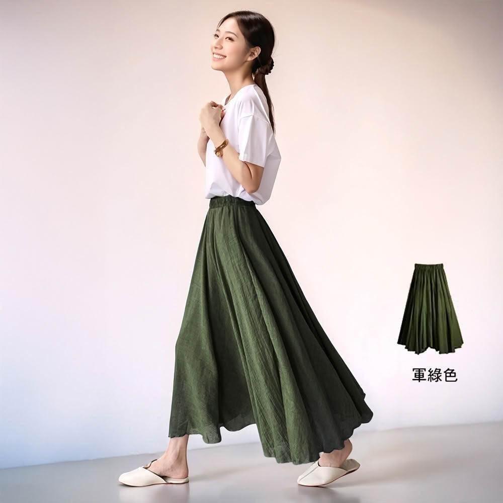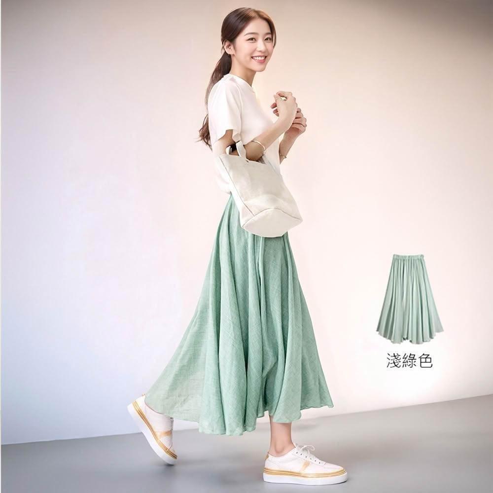 Amore百搭輕柔舒適飄逸氣質亞麻裙 日系長裙 a字長裙 亞麻 裙子 褲裙長裙 a字裙 黑色長裙 女生長裙