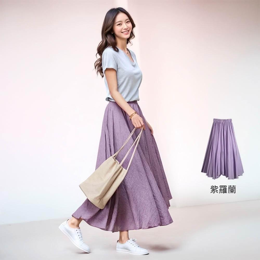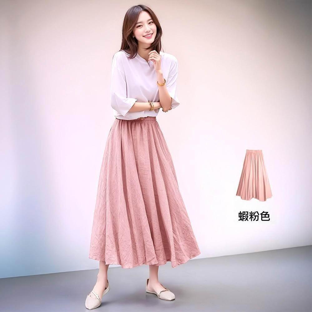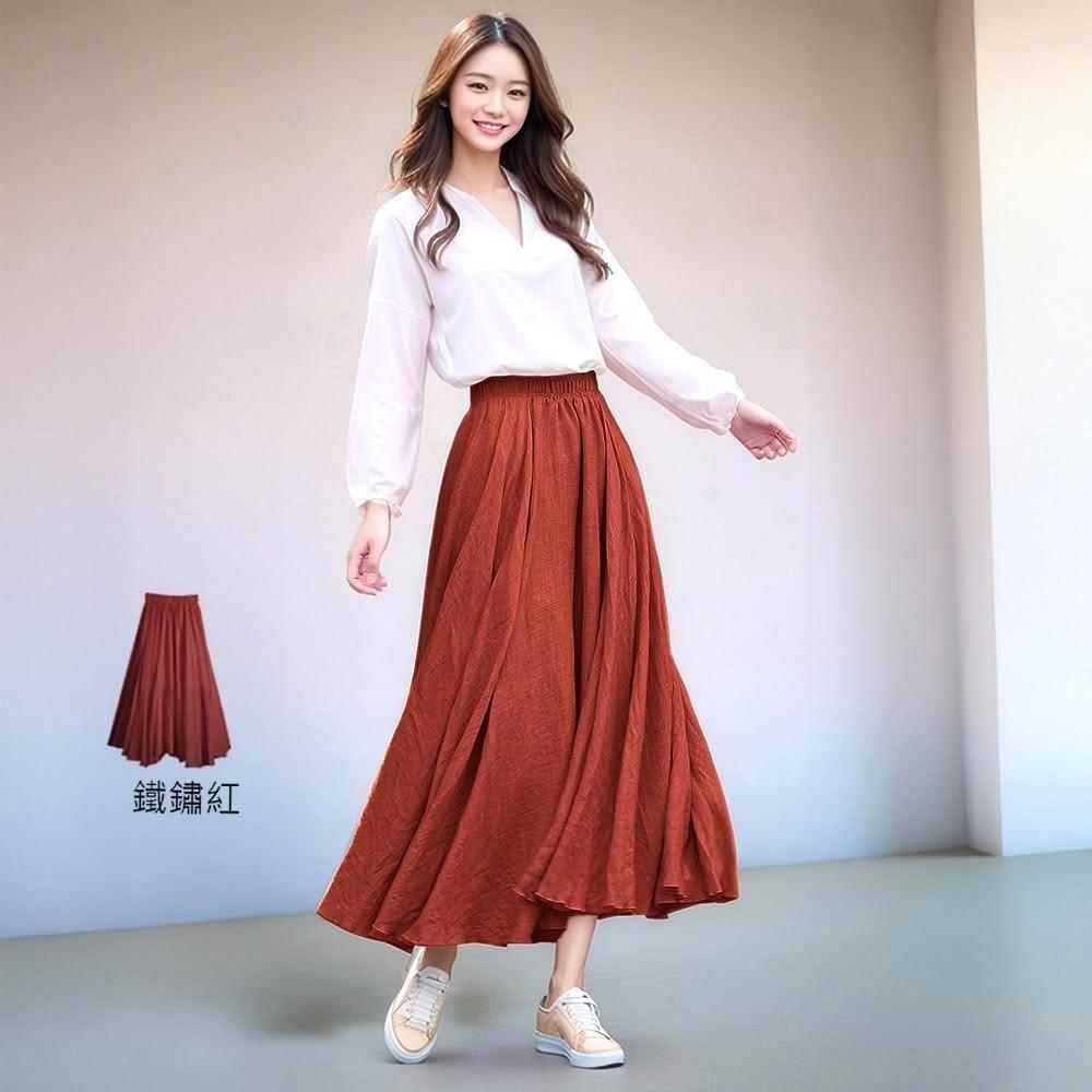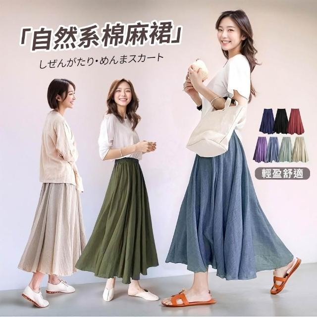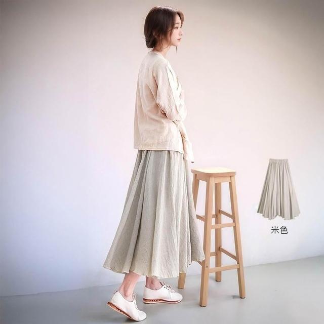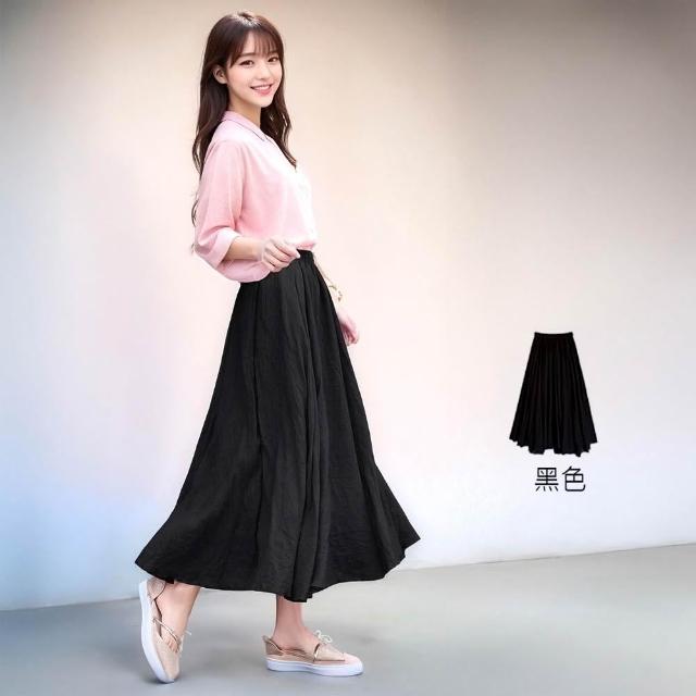 Amore百搭輕柔舒適飄逸氣質亞麻裙 日系長裙 a字長裙 亞麻 裙子 褲裙長裙 a字裙 黑色長裙 女生長裙