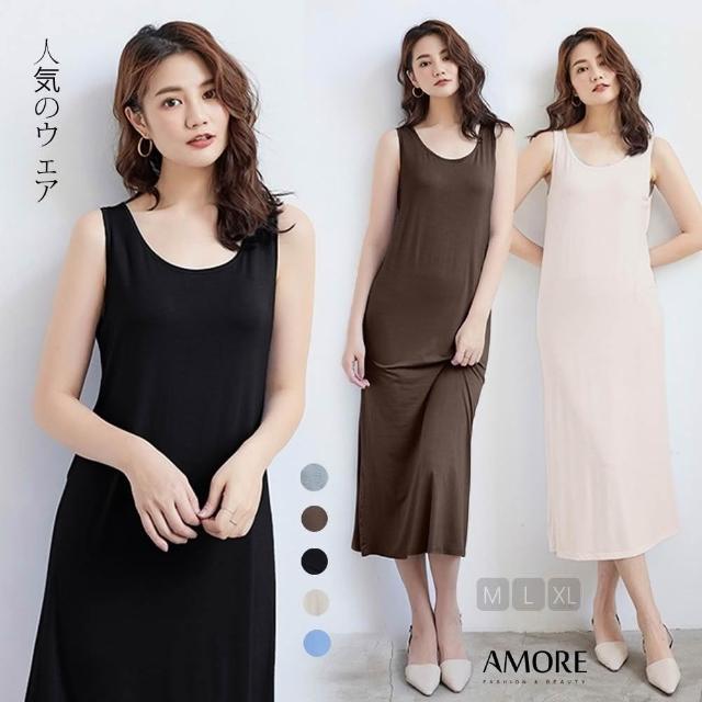 Amore夏季莫代爾長版洋裝 U領上衣 無袖洋裝 居家服 連身裙 裙子 長裙 女上衣 長版上衣 女生洋裝 居家睡衣 無袖上衣