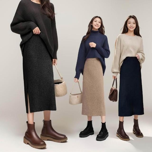 AMONE秋冬開衩針織包臀裙 針織長裙 針織裙 針織半身裙 高彈性 開衩長裙 顯瘦長裙 裙子 包臀裙