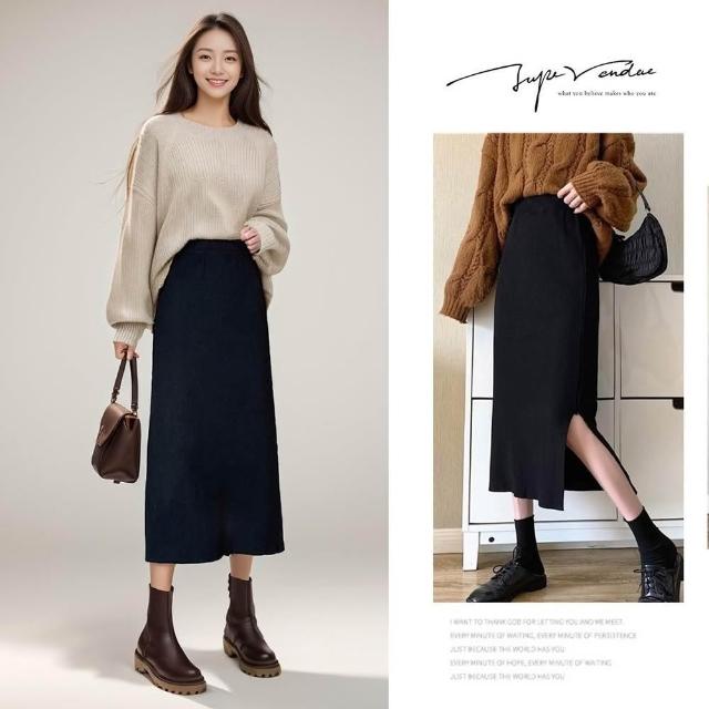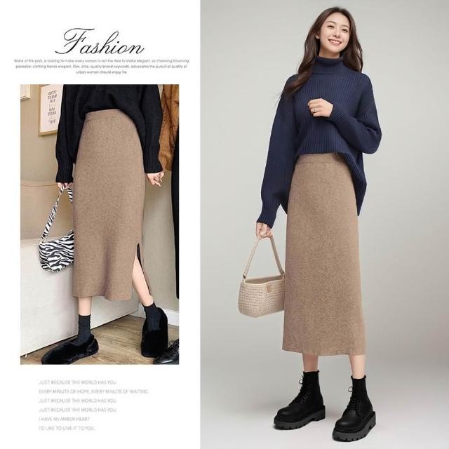 Amore秋冬開衩針織包臀裙 針織長裙 針織裙 針織半身裙 高彈性 開衩長裙 顯瘦長裙 裙子 包臀裙
