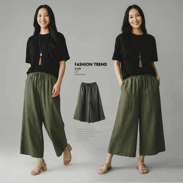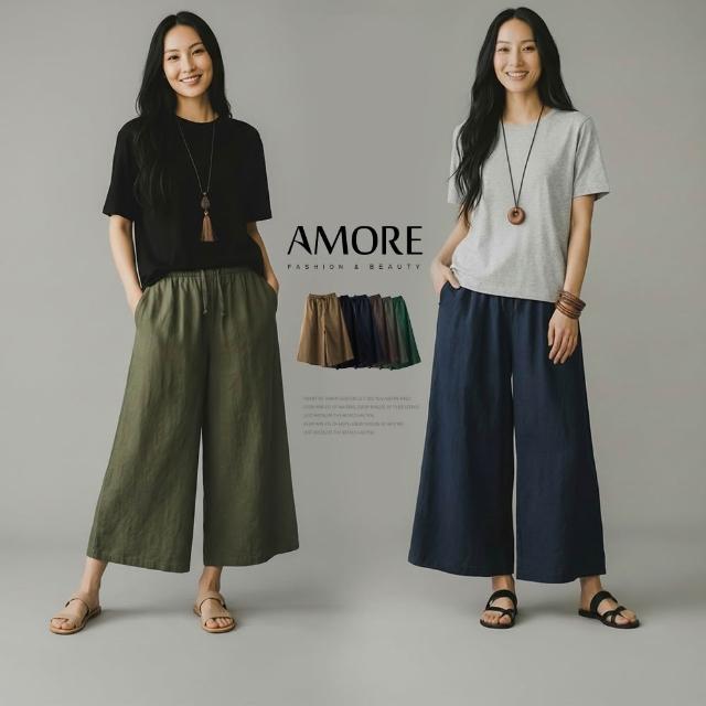 Amore日系水洗棉麻褲 素色亞麻 長褲 女長褲 休閒褲 大尺碼 寬鬆 寬褲女 日系女裝6色