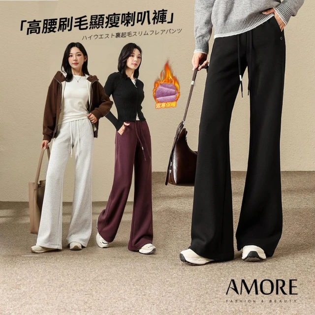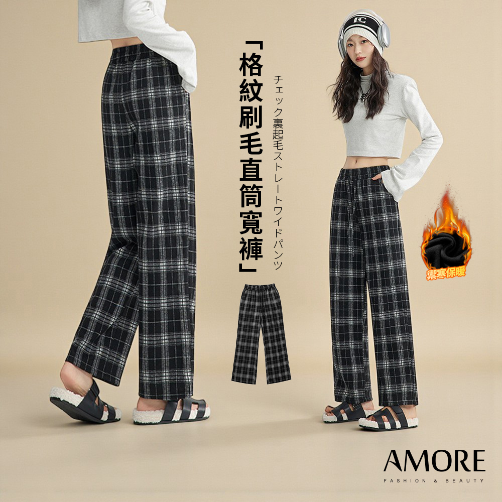 Amore限時特價-秋冬刷毛直筒褲 加絨褲 直筒褲 保暖長褲 保暖褲 刷毛褲 顯瘦直筒褲 休閒褲 女褲