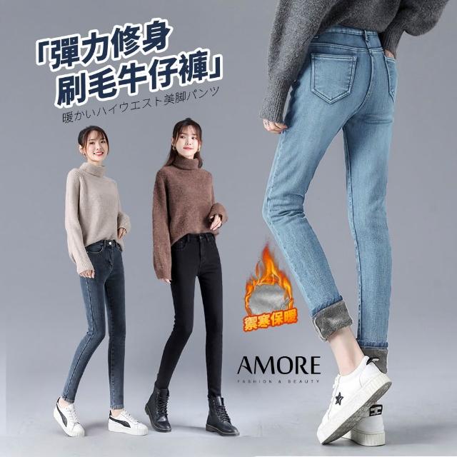 Amore限時特價-秋冬刷毛直筒褲 加絨褲 直筒褲 保暖長褲 保暖褲 刷毛褲 顯瘦直筒褲 休閒褲 女褲