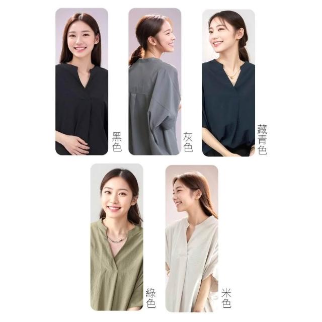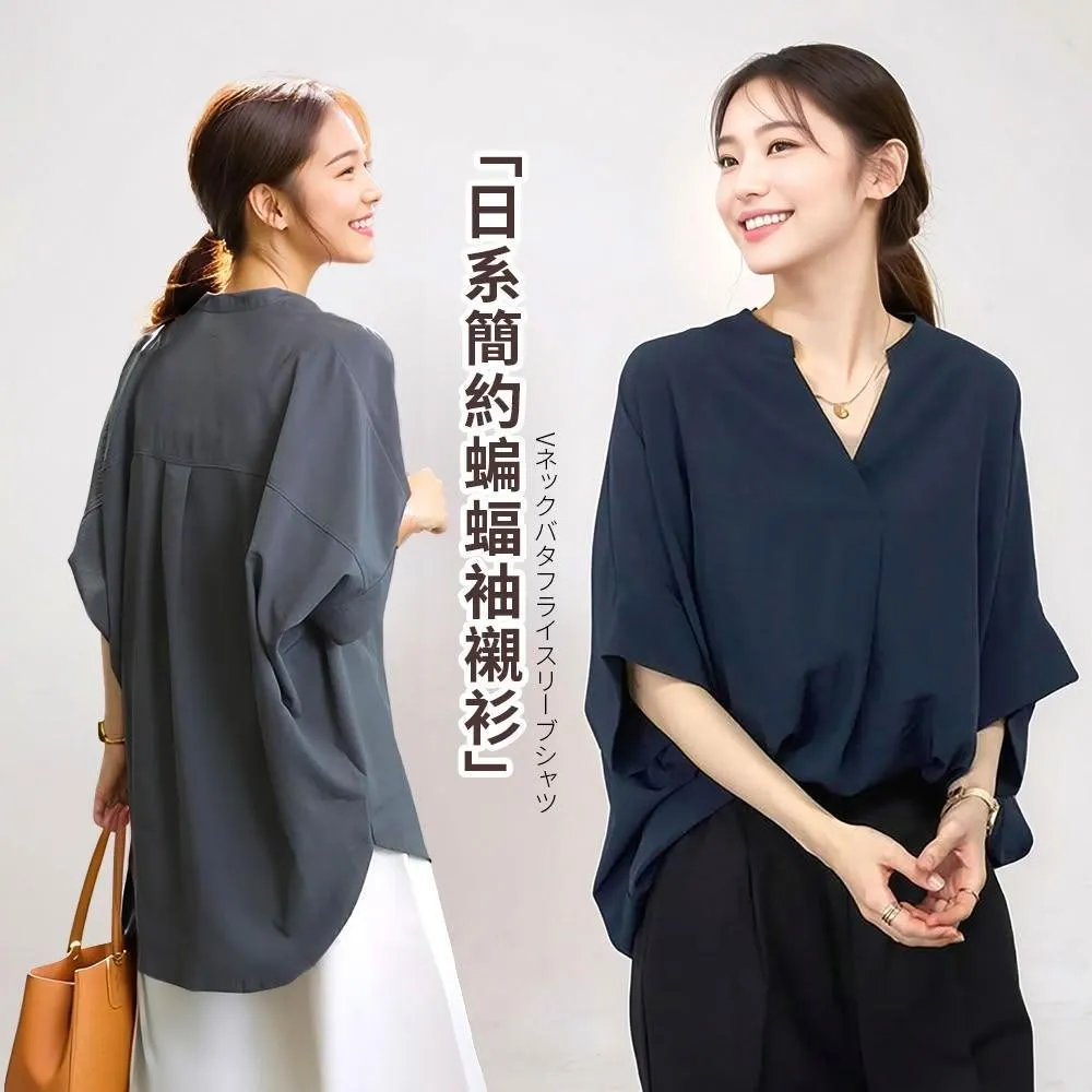 AMONE夏季v領寬鬆蝙蝠袖襯衫 雪紡襯衫 短袖上衣 大尺碼 長版上衣 蝙蝠袖上衣 v領襯衫 上班族上衣