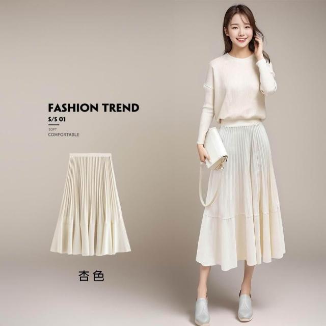 Amore韓版顯瘦百褶裙 高腰半身裙 百摺裙 大尺碼長裙 百褶長裙 裙子 a字長裙 顯瘦長裙 黑長裙 女裝