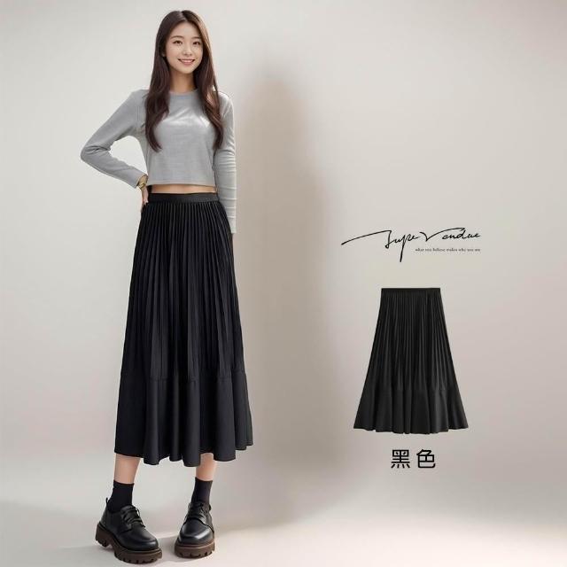 Amore韓版顯瘦百褶裙 高腰半身裙 百摺裙 大尺碼長裙 百褶長裙 裙子 a字長裙 顯瘦長裙 黑長裙 女裝