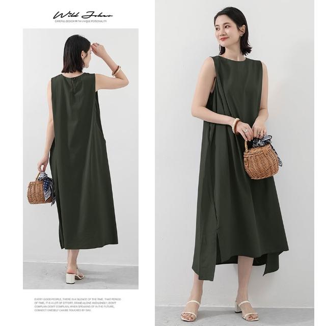 Amore日系棉麻無袖文青層次感長裙 連身裙 女無袖上衣 無袖洋裝 棉麻洋裝 連衣裙