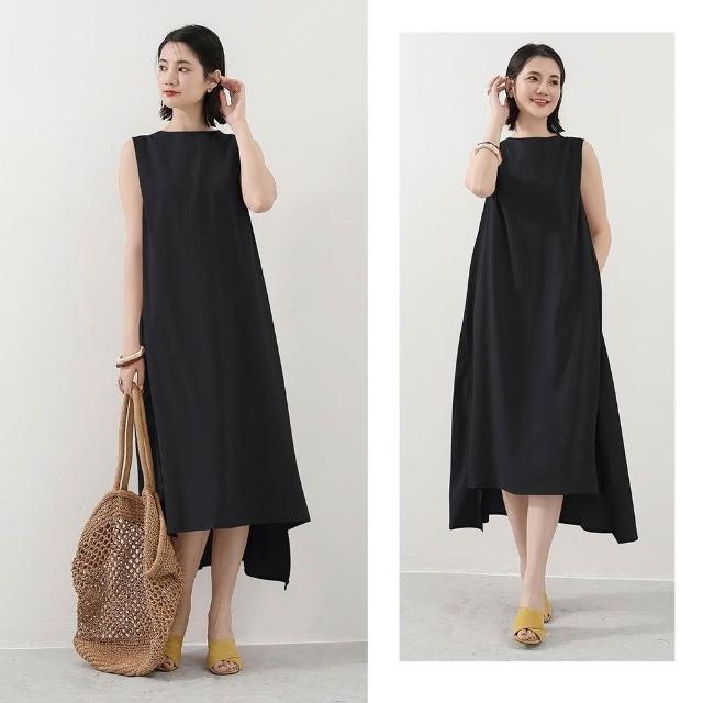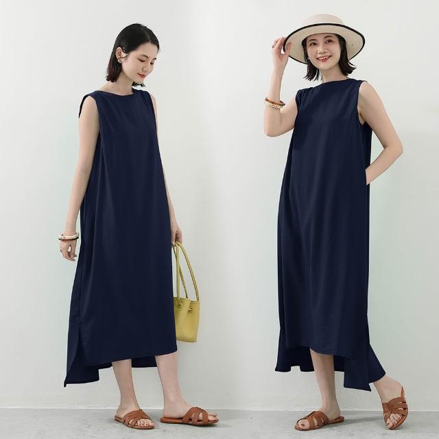 Amore日系棉麻無袖文青層次感長裙 連身裙 女無袖上衣 無袖洋裝 棉麻洋裝 連衣裙