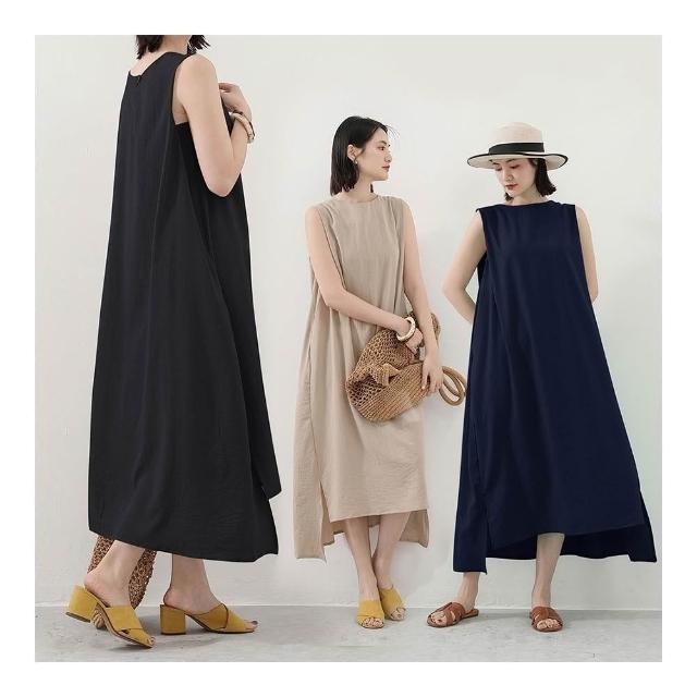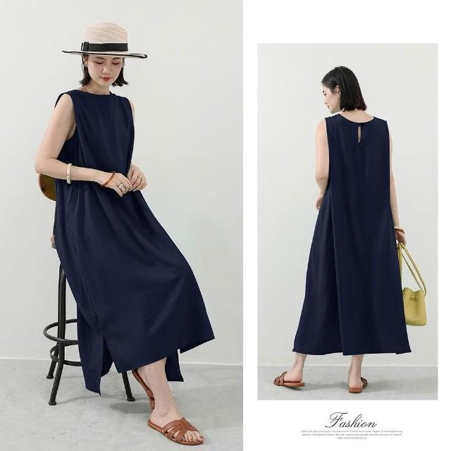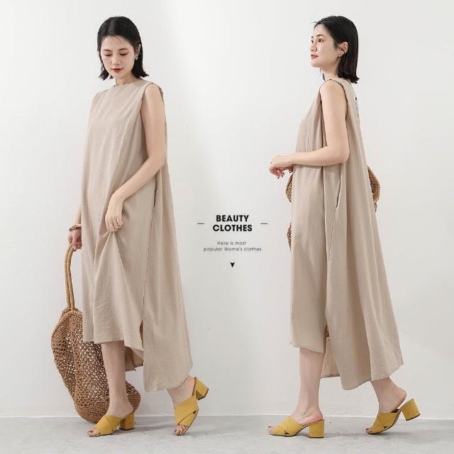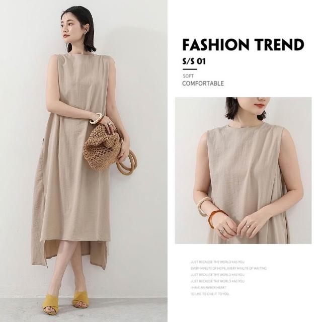 Amore日系棉麻無袖文青層次感長裙 連身裙 女無袖上衣 無袖洋裝 棉麻洋裝 連衣裙