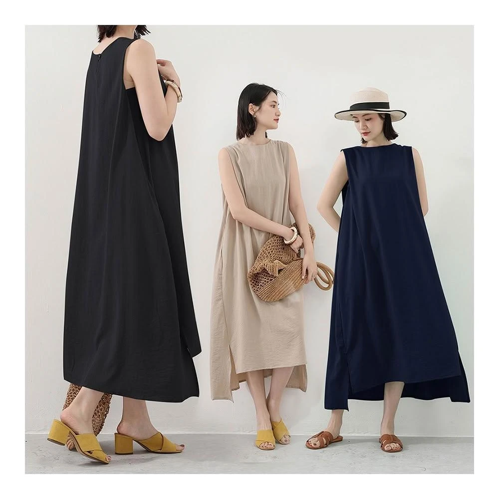 Amore日系棉麻無袖文青層次感長裙 連身裙 女無袖上衣 無袖洋裝 棉麻洋裝 連衣裙