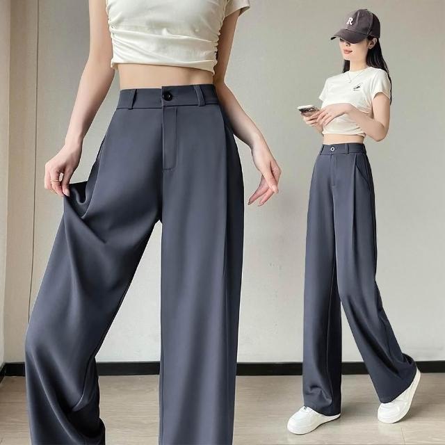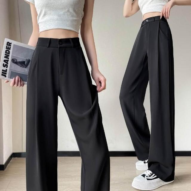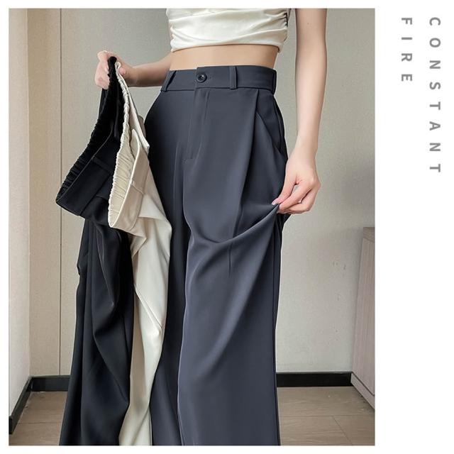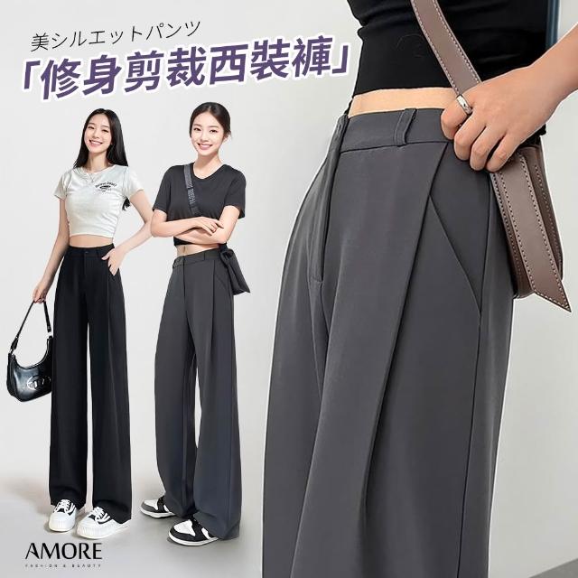 Amore顯瘦剪裁氣質西裝寬褲2色 長褲 西裝褲女 直筒褲 通勤 上班族(質感長褲氣質瞬間升級)