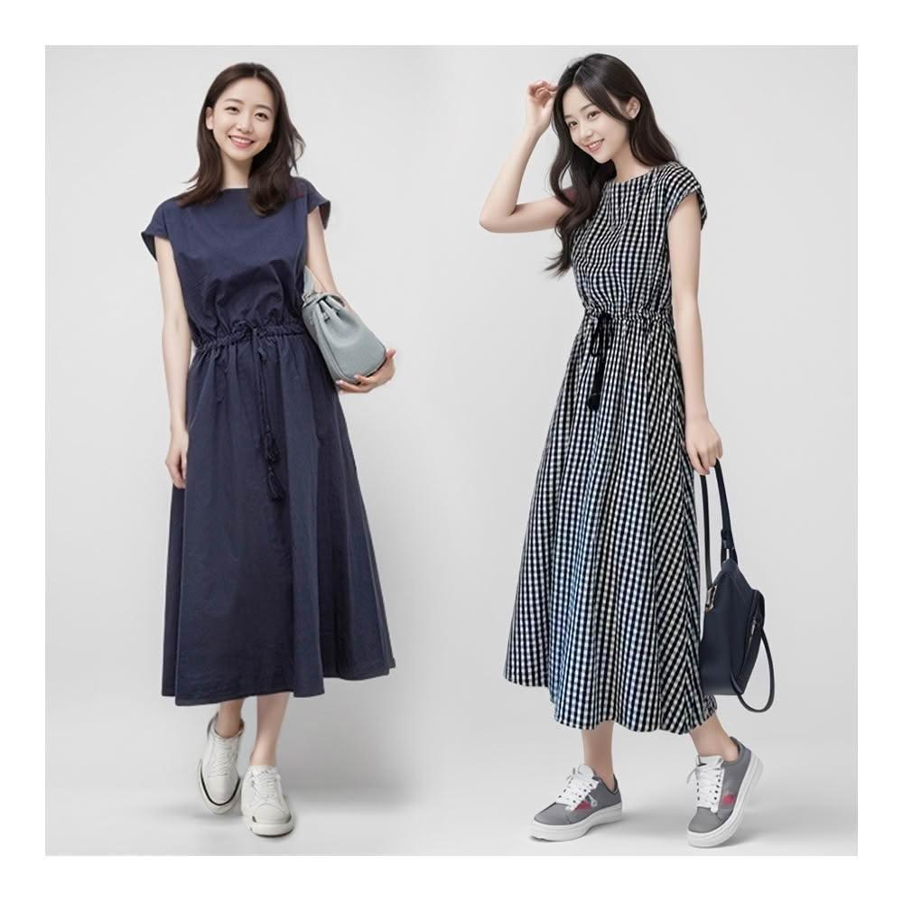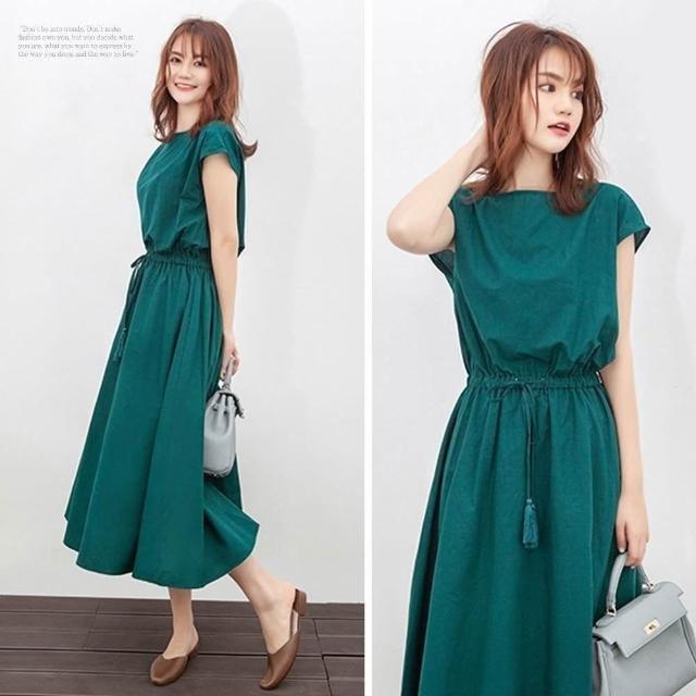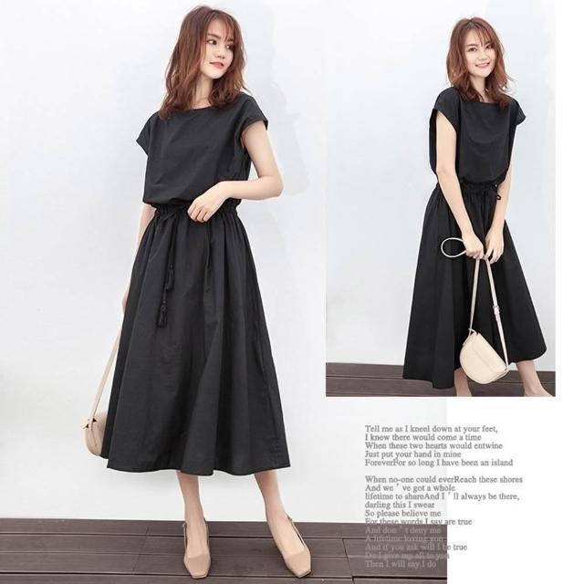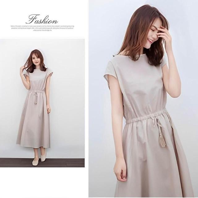 AMONE日系優雅氣質收腰長版洋裝 連身裙女 抽繩連身裙 無袖長洋裝 收腰洋裝 連身裙 長洋裝