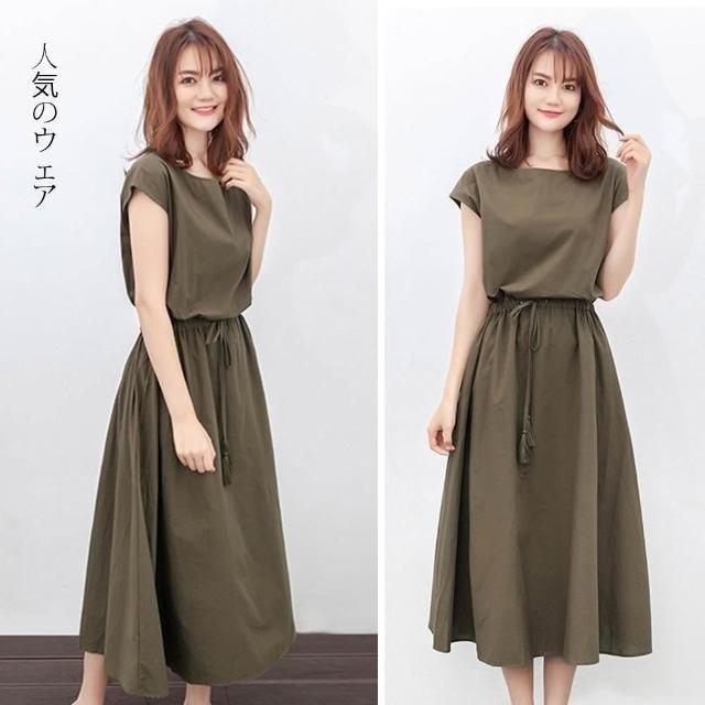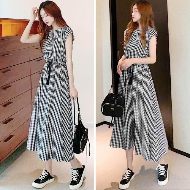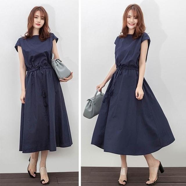 AMONE日系優雅氣質收腰長版洋裝 連身裙女 抽繩連身裙 無袖長洋裝 收腰洋裝 連身裙 長洋裝