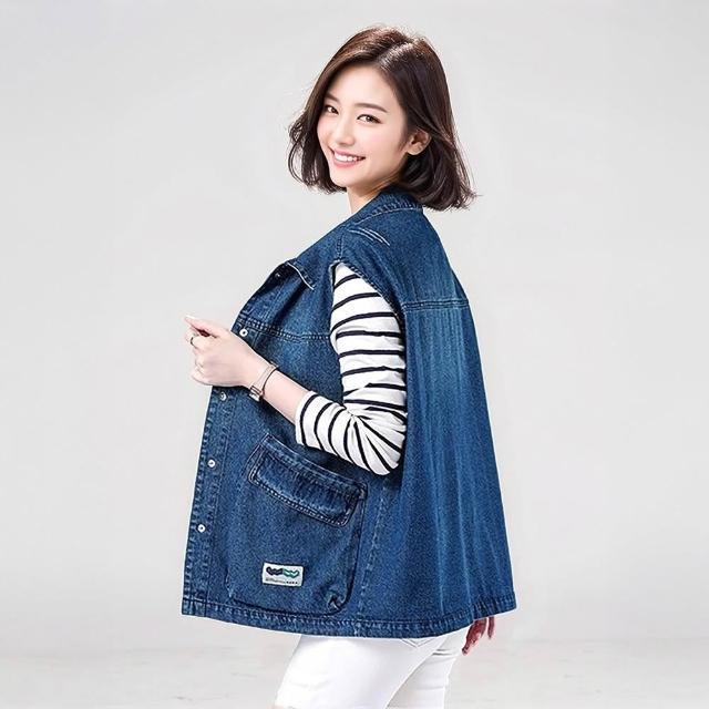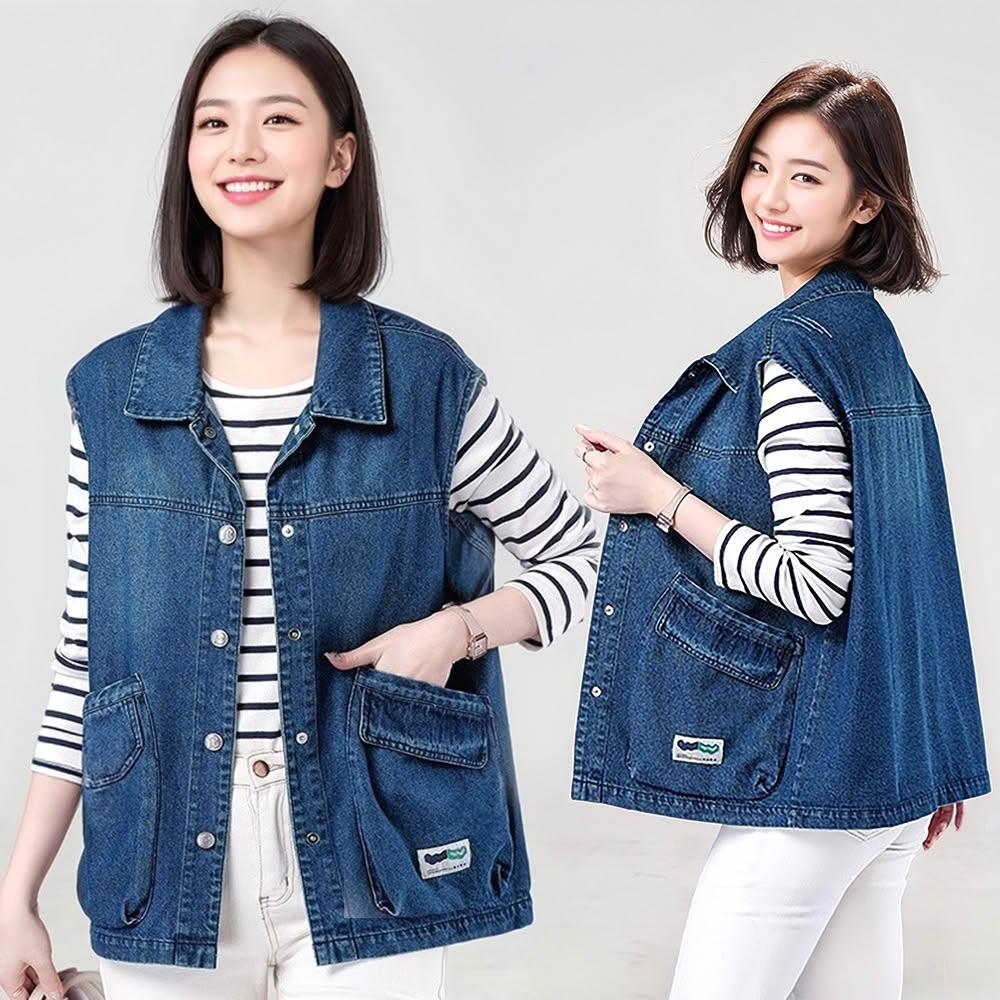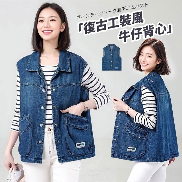 Amore復古工裝風百搭牛仔大口袋背心 牛仔背心 背心外套 馬甲 男友風牛仔外套 女上衣