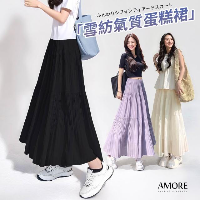 Amore雪紡垂墜氣質層次長裙 雪紡蛋糕裙 雪紡長裙 高腰顯瘦長裙 百褶裙 蛋糕長裙 長裙 雪紡半身裙