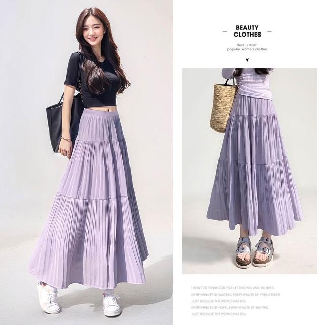 Amore雪紡垂墜氣質層次長裙 雪紡蛋糕裙 雪紡長裙 高腰顯瘦長裙 百褶裙 蛋糕長裙 長裙 雪紡半身裙