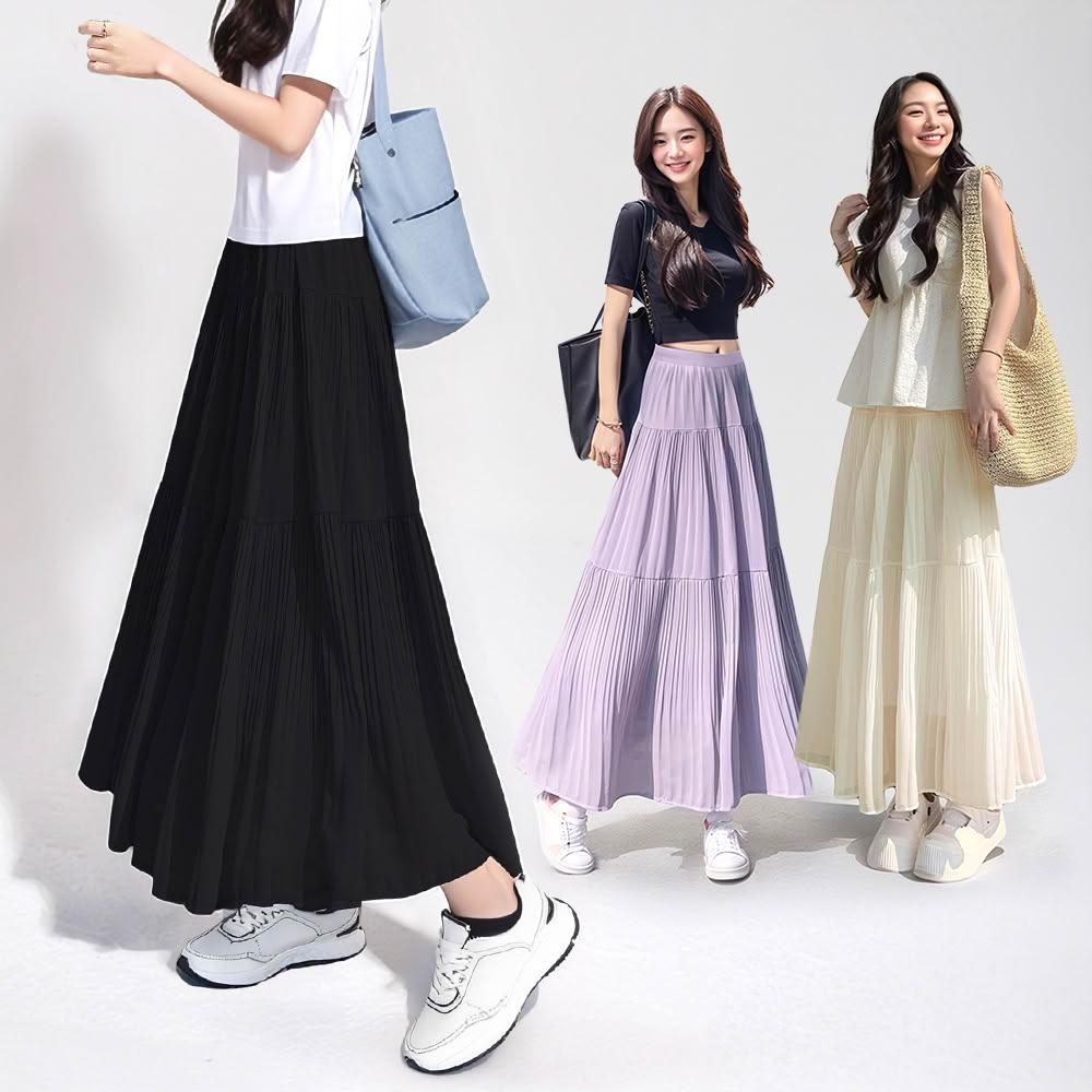 Amore雪紡垂墜氣質層次長裙 雪紡蛋糕裙 雪紡長裙 高腰顯瘦長裙 百褶裙 蛋糕長裙 長裙 雪紡半身裙
