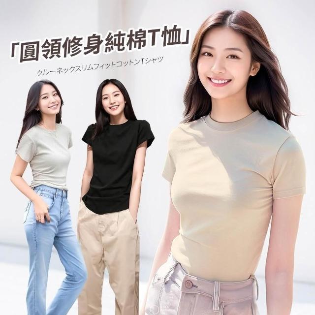 Amore夏季純棉短袖上衣 素色t恤 圓領t恤 親膚打底衫 大學t 短袖素t 純棉上衣 女生上衣 女裝6色