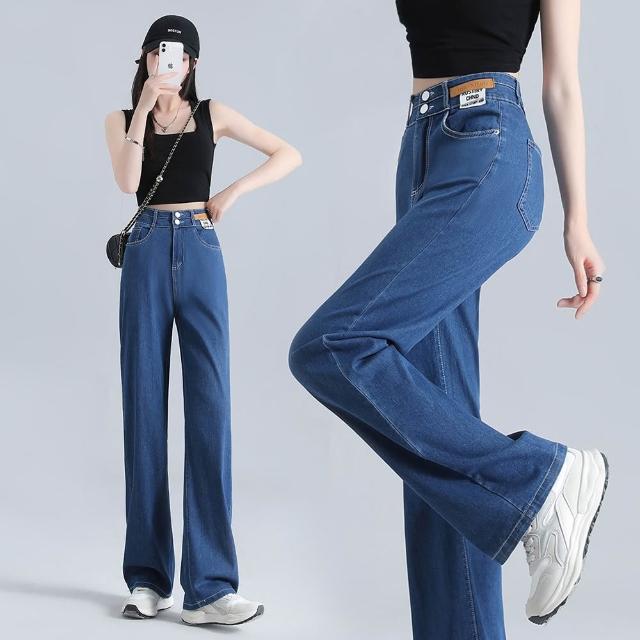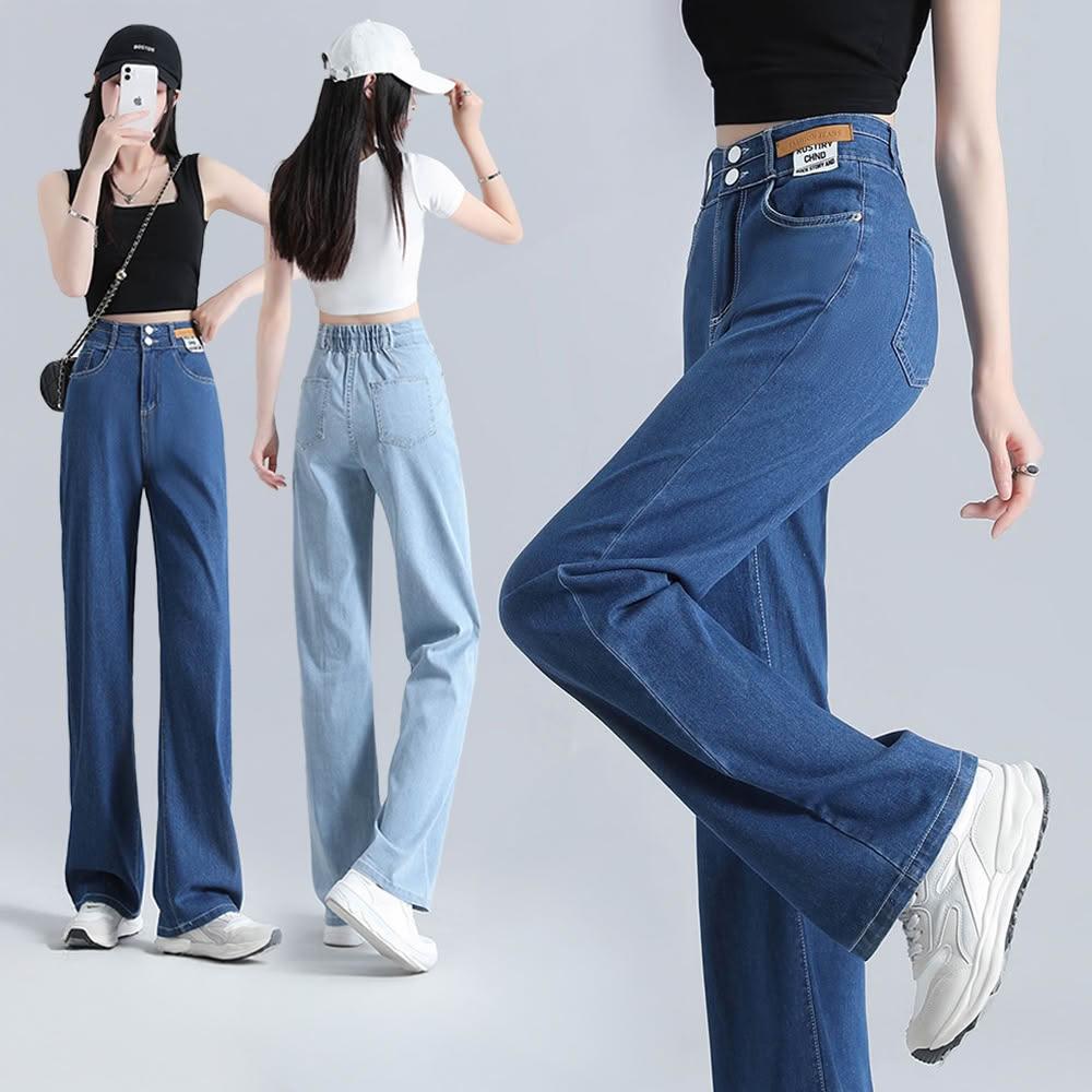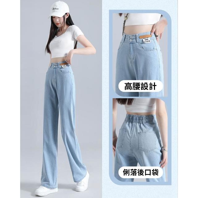 Amore夏季顯瘦天絲涼感牛仔直筒褲 夏季薄款天絲牛仔褲 牛仔寬褲 涼感牛仔褲 涼感寬褲 女生長褲 高腰顯瘦牛仔褲