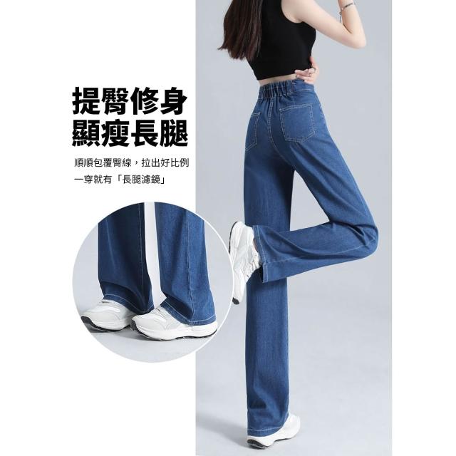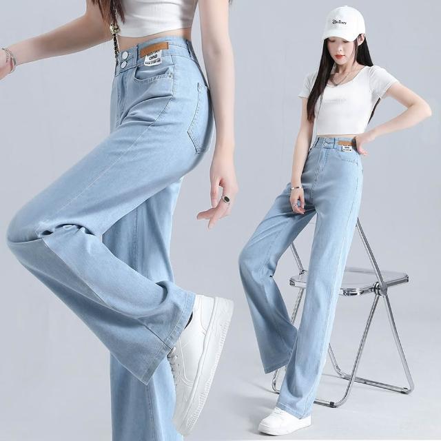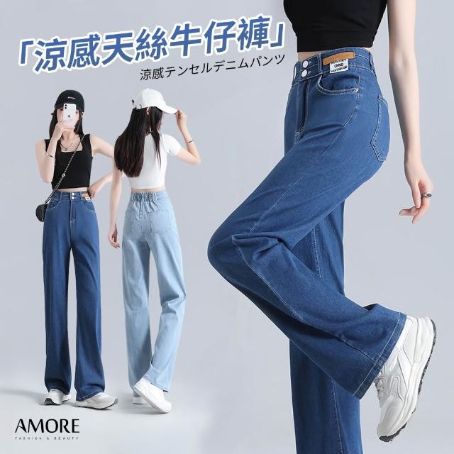 Amore夏季顯瘦天絲涼感牛仔直筒褲 夏季薄款天絲牛仔褲 牛仔寬褲 涼感牛仔褲 涼感寬褲 女生長褲 高腰顯瘦牛仔褲