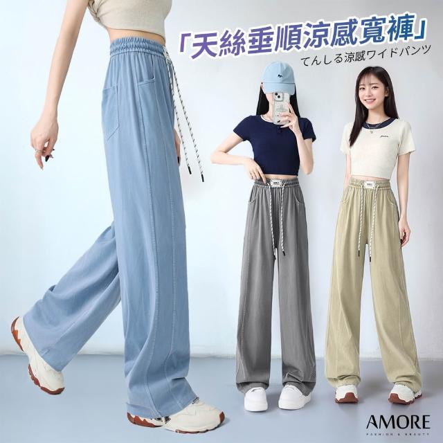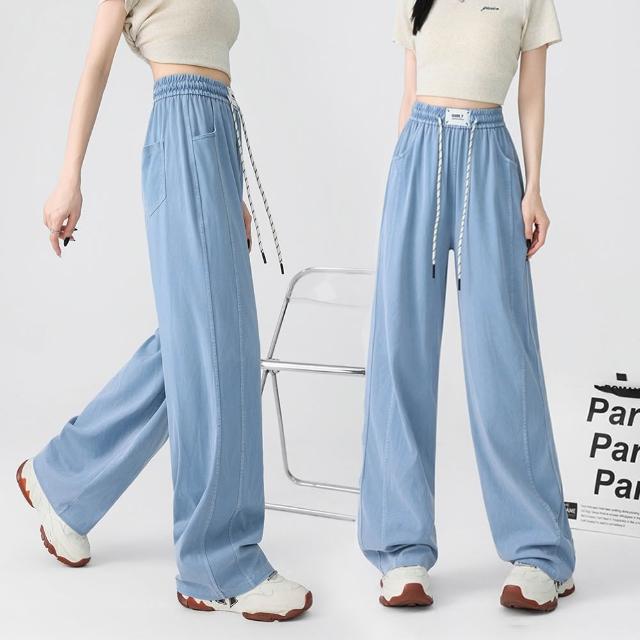 Amore天絲滑順涼感牛仔寬褲 涼感褲 天絲寬褲 牛仔褲 牛仔寬褲 山本褲 直筒寬褲 高腰顯瘦長褲 大尺碼牛仔褲 女褲 女裝