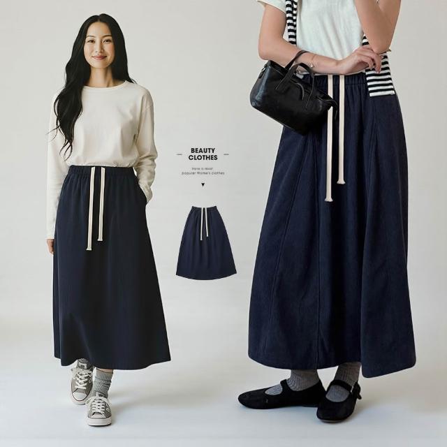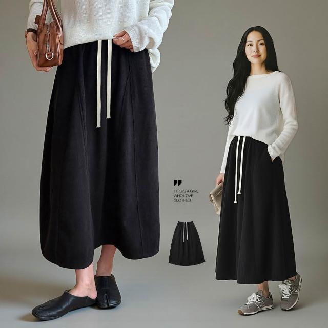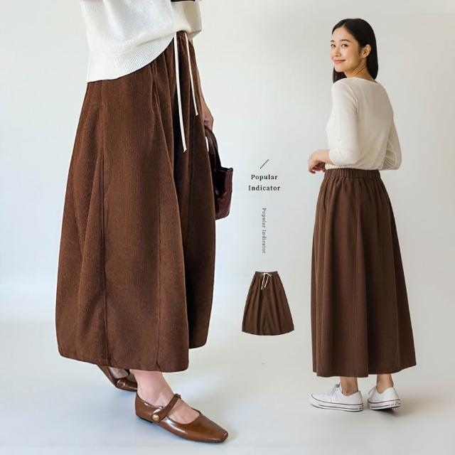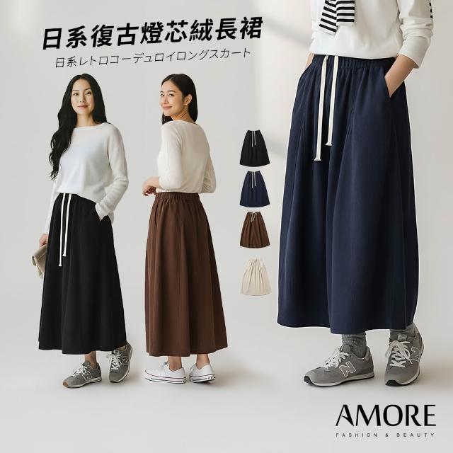 Amore秋冬日系復古燈芯絨長裙 傘裙 A字裙