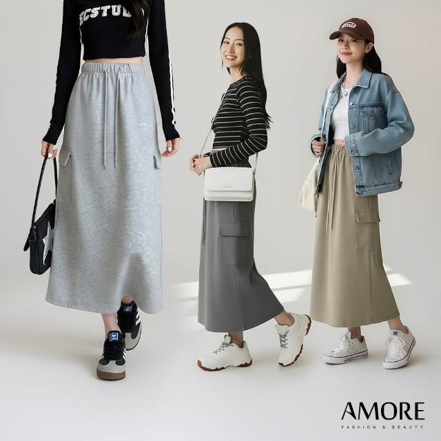 Amore秋冬美式運動風開衩工裝裙4色 長裙 開衩裙