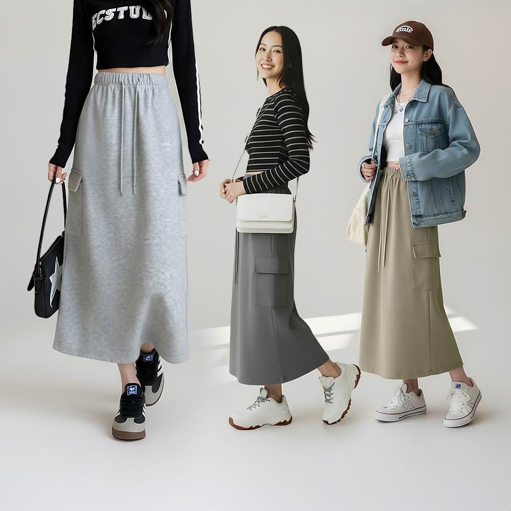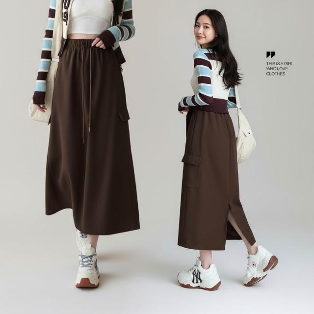 Amore秋冬美式運動風開衩工裝裙4色 長裙 開衩裙