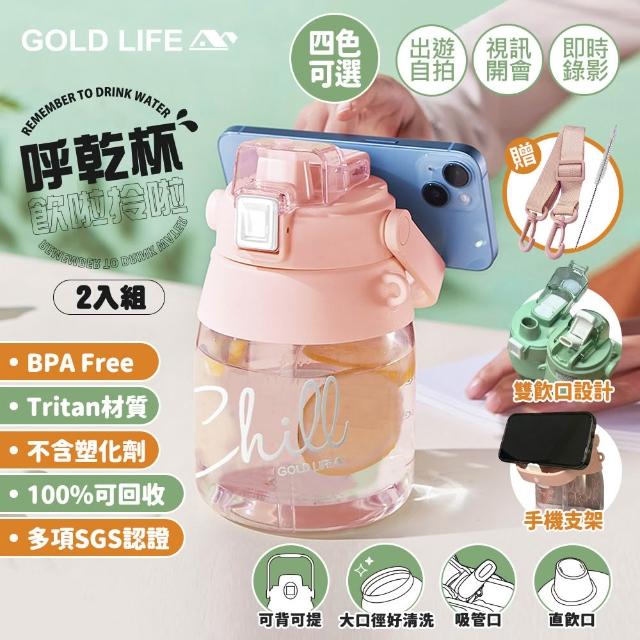 GOLD LIFEtritan 2 入-相伴瓶系列-雙飲口水壺 呼乾杯-1000ML