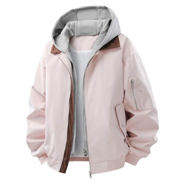 防風外套 飛行夾克 假兩件連帽工裝外套 情侶款夾克外套 工裝夾克 春秋季夾克外套 男女同款外套 飛行外套 休閒男裝上衣 棒球服外套