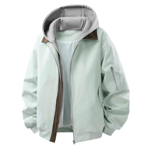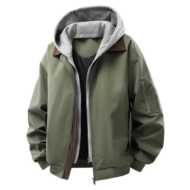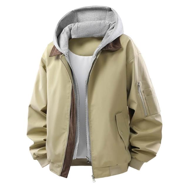 防風外套 飛行夾克 假兩件連帽工裝外套 情侶款夾克外套 工裝夾克 春秋季夾克外套 男女同款外套 飛行外套 休閒男裝上衣 棒球服外套