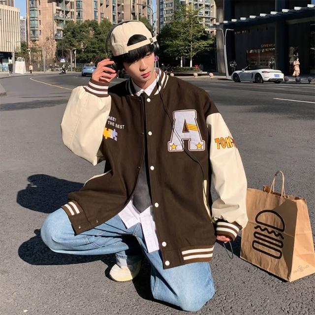棒球服外套情侶款外套 棒球服 寬鬆外套 棒球外套 字母印花棒球服 工裝外套 棒球夾克 棒球服外套 夾克外套 男女衣服 男生外套