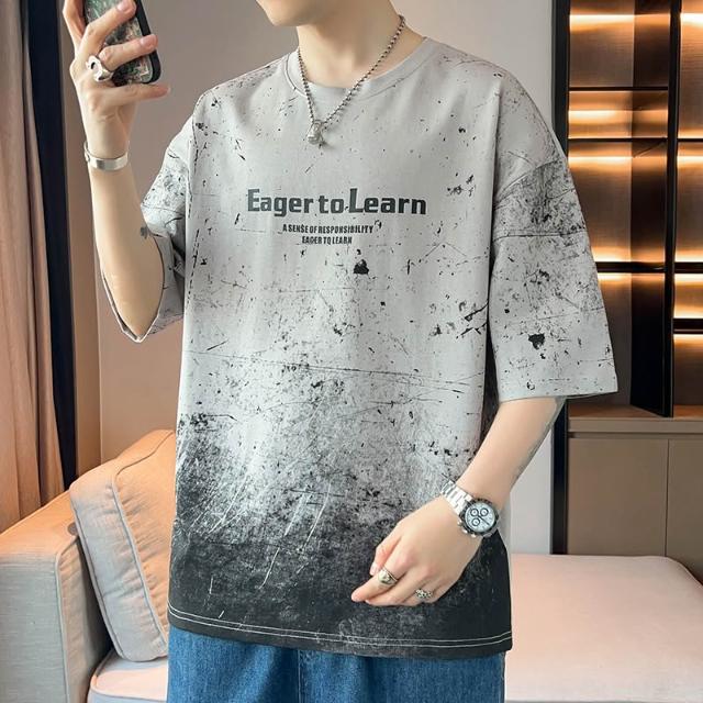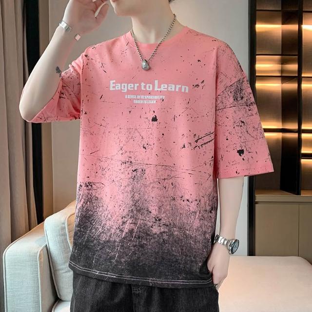 五分袖 男生衣服 圓領T恤 短袖T恤男 休閒寬鬆短袖 休閒T恤 男生短袖 落肩短T 短袖 上衣 寬鬆 落肩 圓領短袖 素T 寬鬆上衣