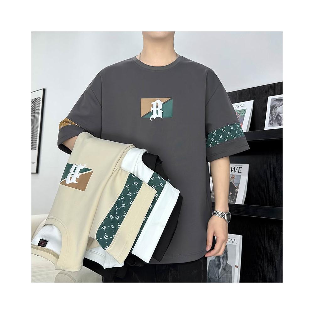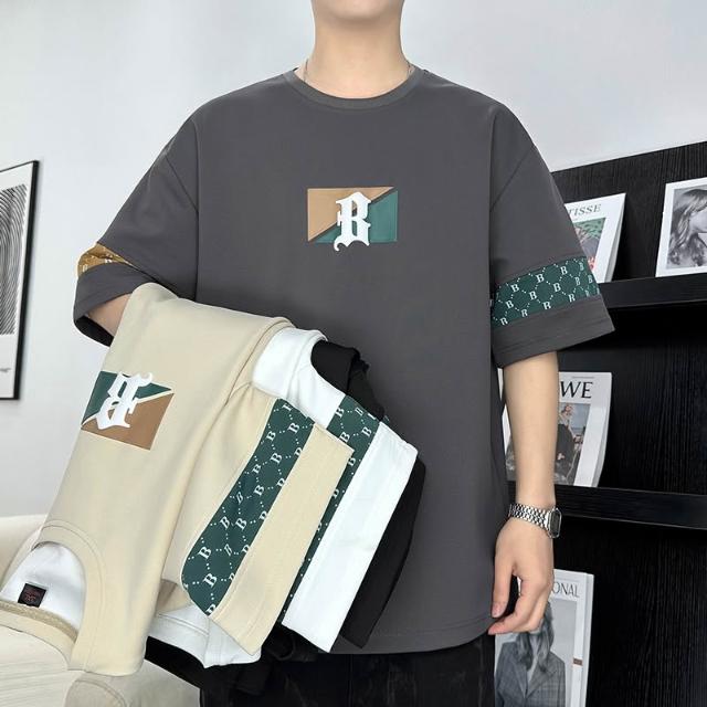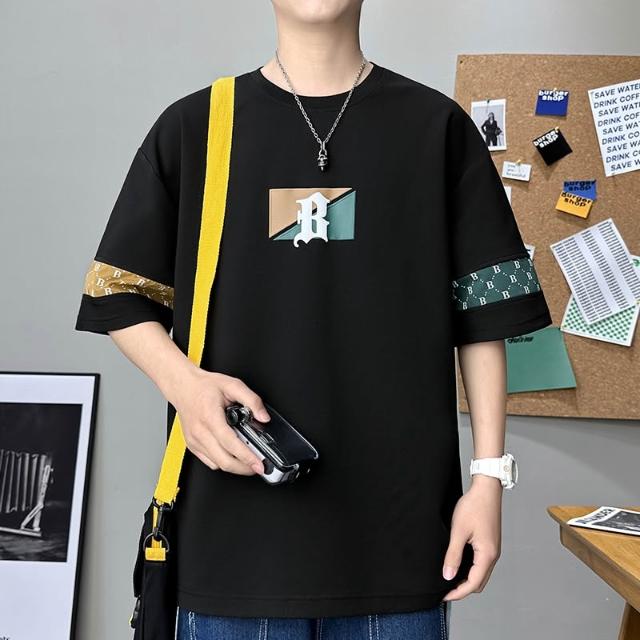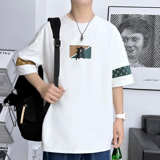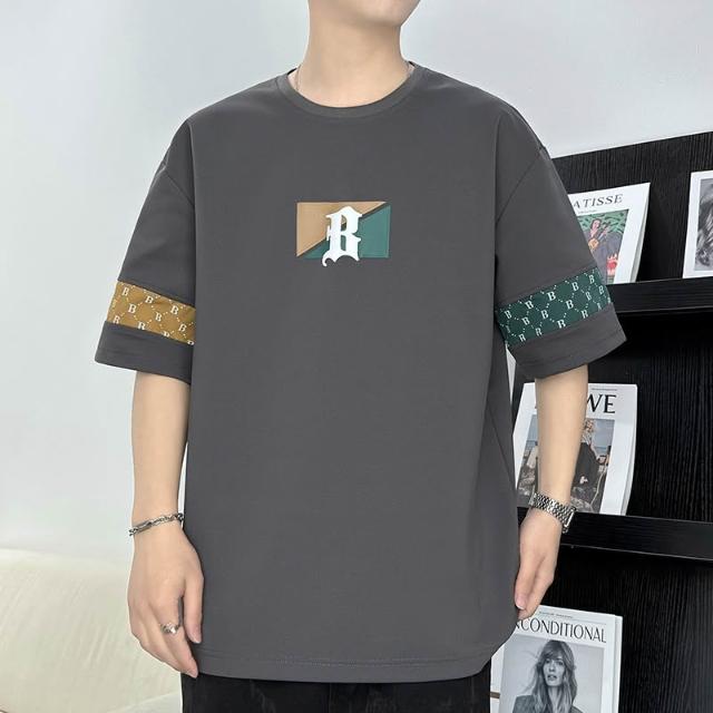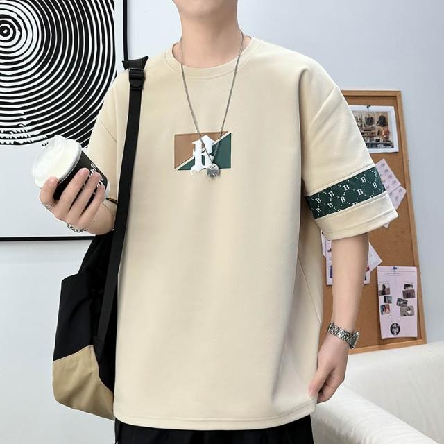 短袖T恤男 落肩短T 落肩 圓領短袖 寬鬆上衣 圓領T恤 五分袖 男生衣服 短袖上衣 休閒寬鬆短袖 休閒T恤 純棉短t 寬鬆短袖上衣 素T
