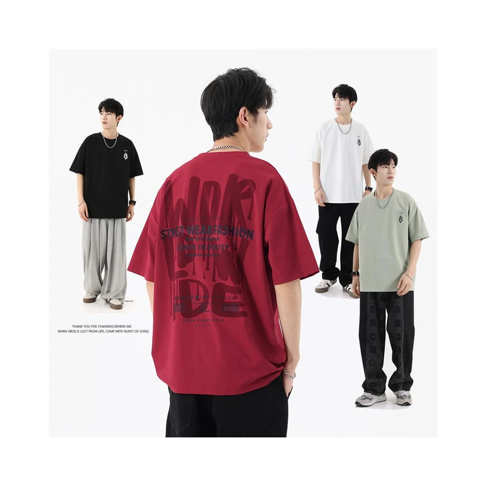 男T 印花T恤 百搭圓領 短袖T恤男 短T男生短袖 顯瘦寬鬆落肩五分袖上衣 男生衣服 夏季薄款透氣 落肩短T 短袖上衣 男生上衣短袖