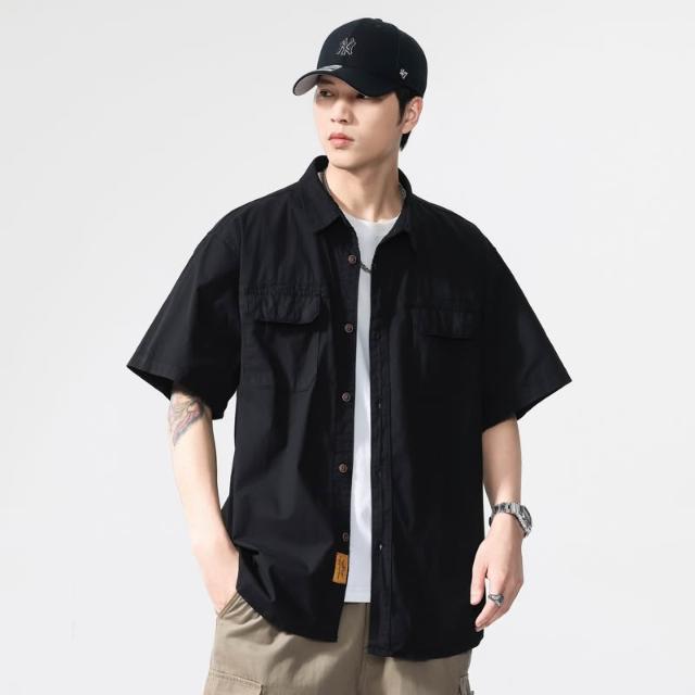 襯衫 襯衫寬鬆 開衫 夏季休閑襯衫 短襯衫 襯衫短袖 夏季美式短袖上衣男 短袖 襯衫夏天 襯衫外套 翻領短袖襯衫男 夏季薄襯衫 寬鬆襯衣