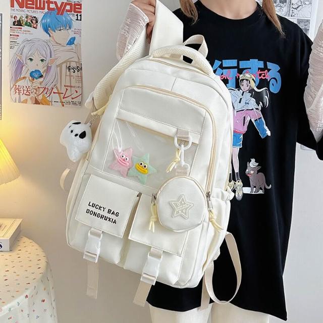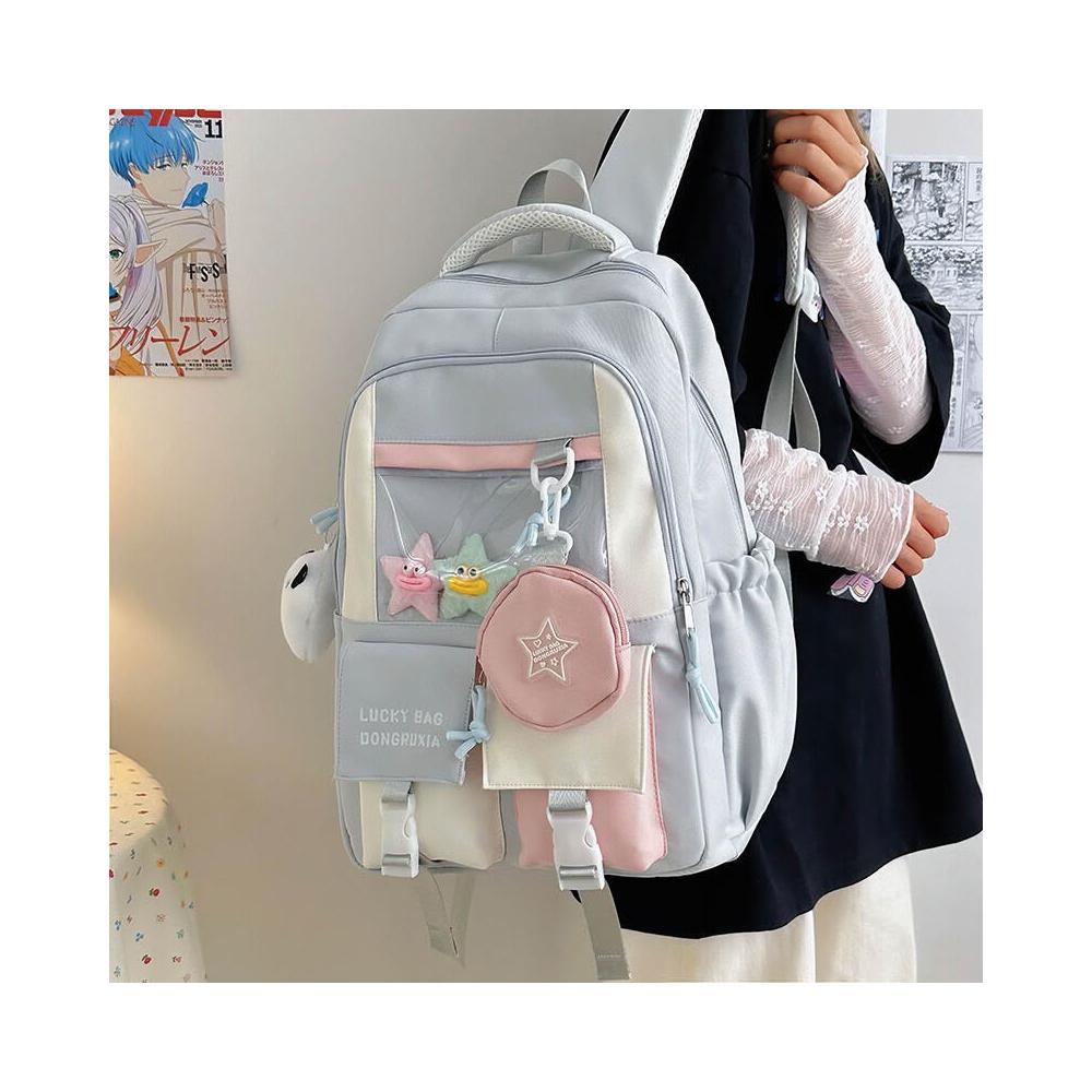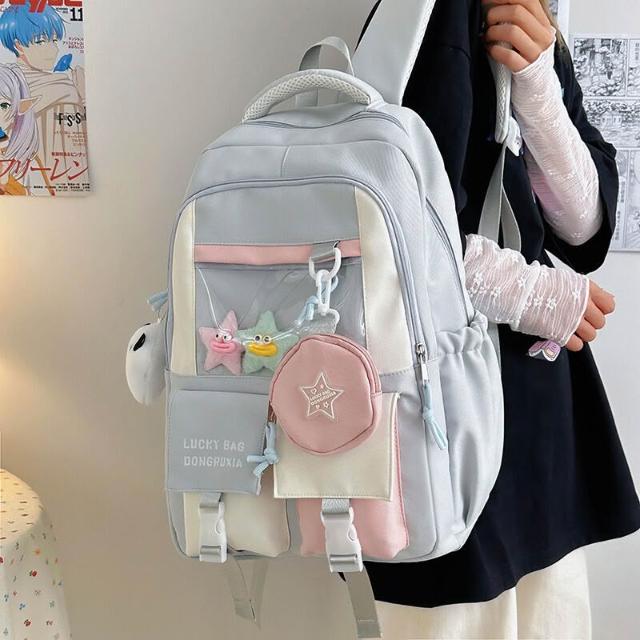 書包女高年級國中護脊輕量兒童低年級國小書包減壓多口袋大容量防水學生後背包側背白韓版雙肩包包筆電包15.6寸旅行登山包包