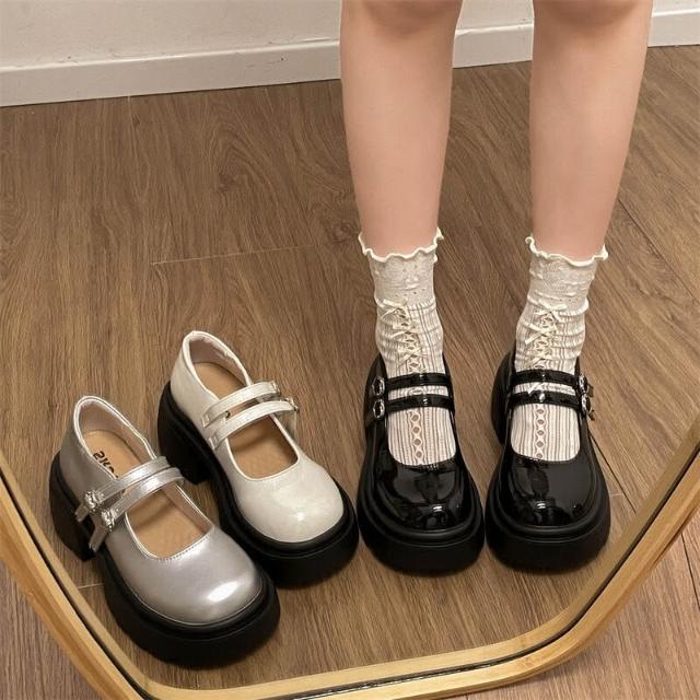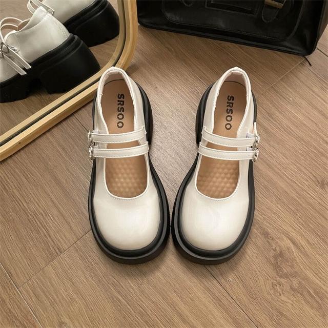瑪莉珍鞋瑪麗珍學生黑色小皮鞋復古粗跟低跟軟底樂福鞋法式厚底百搭時尚圓頭方頭帶跟舒適甜美可愛娃娃鞋女生大尺碼英倫風瑪莉珍鞋