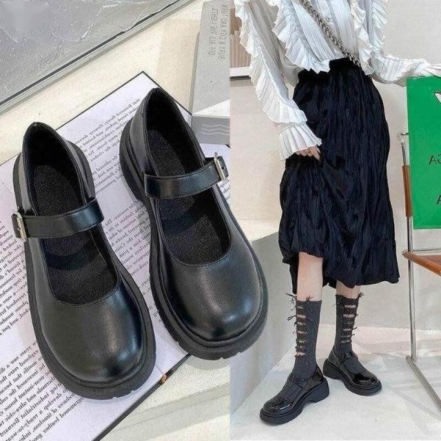 瑪莉珍鞋瑪麗珍學生黑色小皮鞋粗跟復古低跟軟底樂福鞋厚底法式時尚百搭圓頭方頭帶跟舒適甜美可愛娃娃鞋女生大尺碼英倫風瑪莉珍鞋