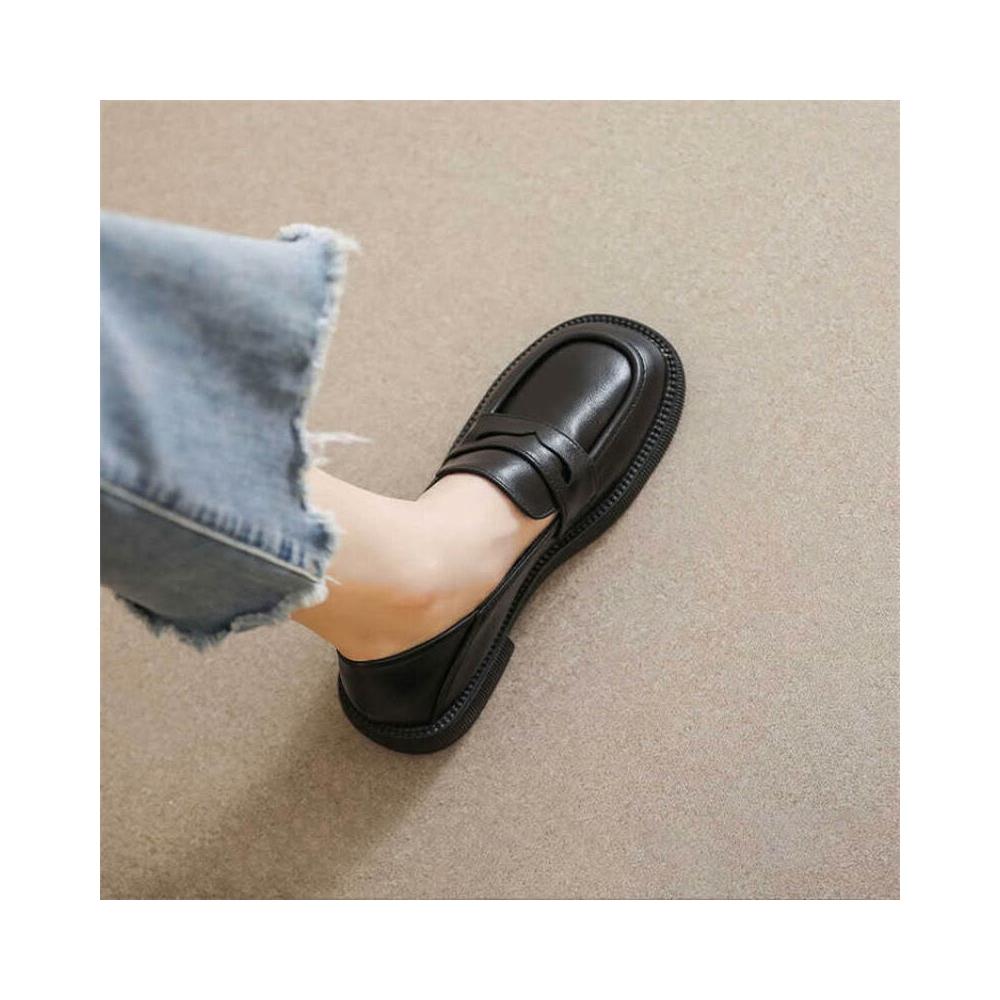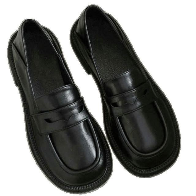 樂福鞋女厚底軟底輕量中跟低跟圓頭舒適粗跟瑪莉珍鞋防滑防臭防水止滑大尺碼娃娃鞋時尚百搭jk上班通勤商務黑色中年媽媽小皮鞋