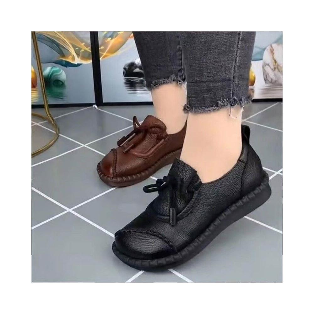 樂福鞋女厚底軟底輕量低跟中跟圓頭舒適粗跟瑪莉珍鞋防臭防滑防水止滑大尺碼娃娃鞋時尚百搭jk上班商務通勤黑色中年媽媽小皮鞋
