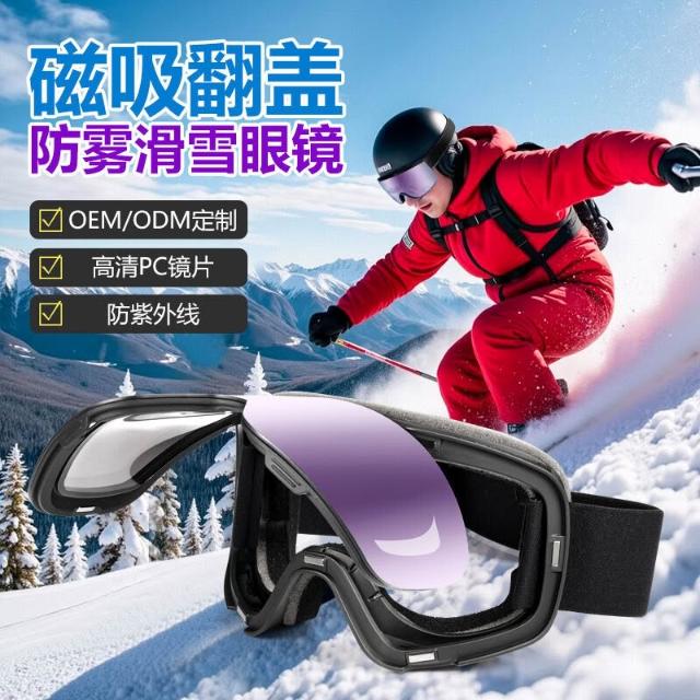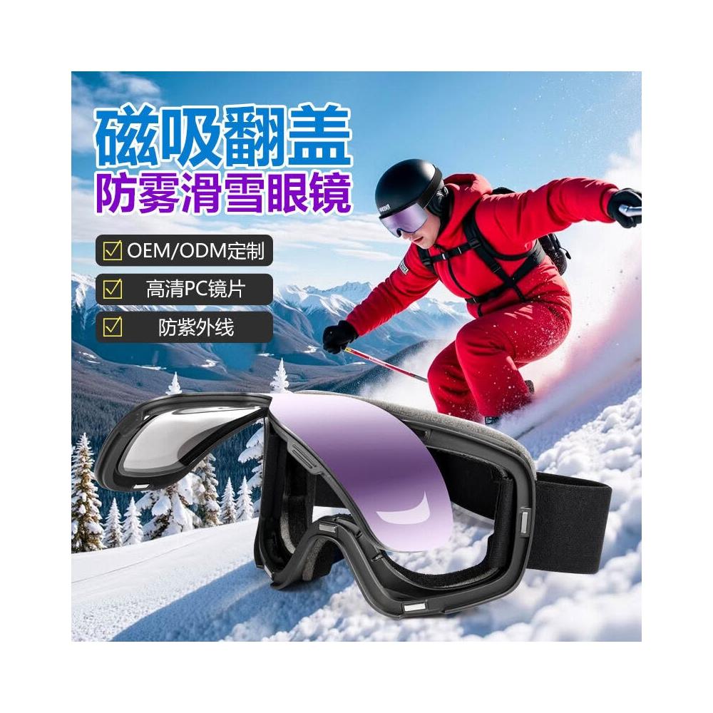 新款翻蓋滑雪鏡柱面磁吸雙層防霧防風戶外運動護目鏡雪地滑雪眼鏡